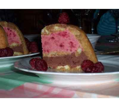 Dans une casserole, mettez un filet d'eau, puis faites fondre le chocolat noir à feu doux, sans le faire cuire. Un fois fondu, ajoutez-y la moitié du coulis de fraise et quelques framboises, ainsi que quelques gouttes de rhum. Laissez refroidir hors du feu.