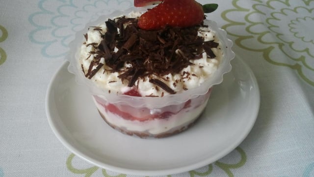 Imbibez les spéculoos dans le lait, et faire une première couche avec. Ensuite mettre une couche de crème, puis les fraises, et remettre une couche de spéculoos et une couche de crème. Ensuite mettre les copeaux de chocolat et mettre au frais. Si vous préférez mettre du cacao en poudre, le mettre juste avant de le servir et pas avant.