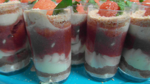 Une verrine fraises mascarpone et biscuits de Reims.