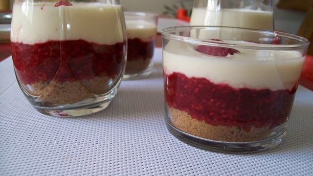 Tapisser les verrines de spéculoos. Recouvrir de framboises, étaler par-dessus une couche de la préparation de mascarpone. Finir par déposer une ou 2 framboises.