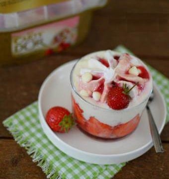 Au moment de servir, déposer sur chaque tiramisu une rosette de Glace Carte d'Or® Façon Glacier Fraise et morceaux de meringue. Servir aussitôt.