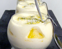 Versez une cuillère de crème mascarpone au fond des verrines, déposez quelques dés de mangue puis recouvrez de crème mascarpone. - 2
