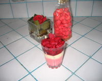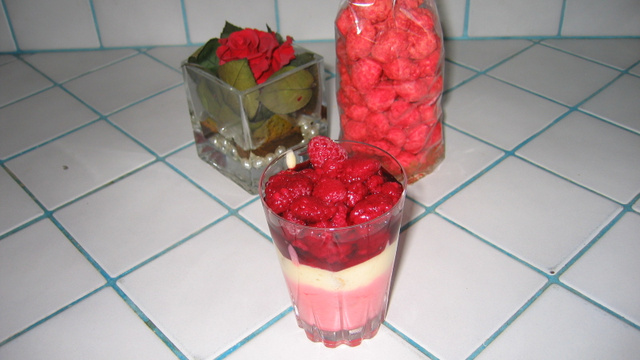 300 g environ de framboises congelées (à faire décongeler environ une heure avant de servir pas plus pour garder la beauté et la tenue du fruit sur les coupelles)