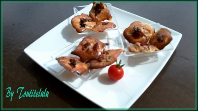 Mettre le mélange dans une poche à douille et faire de petits palets de 3 cm de diamètre. Déposer le reste des tomates séchées sur le dessus des palets et enfourner pendant 30 min.