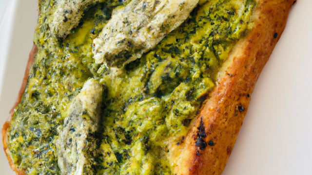 Sur 1 toast : une épaisseur d'omelette bien chaude, une ligne de pesto entourée au choix : d'oeufs d'oeufs de lompe (peu - 2 lignes de 5 ou 6 oeufs), d'anchois (peu - 2 fils d'anchois)