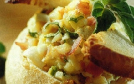 Vider les ballons de la mie. Hacher finement la mie et le haut des ballons.