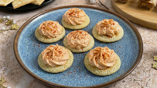 Transvasez le tout dans une poche à douille puis déposez un peu de préparation sur chaque blini.
