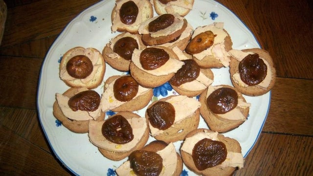 - Griller des toasts de pain de campagne, les couvrir de figues fraîches revenues au beurre ou de confiture de figues blanches, y ajouter des tranches fines de foie gras et une pincée de gros sel.
