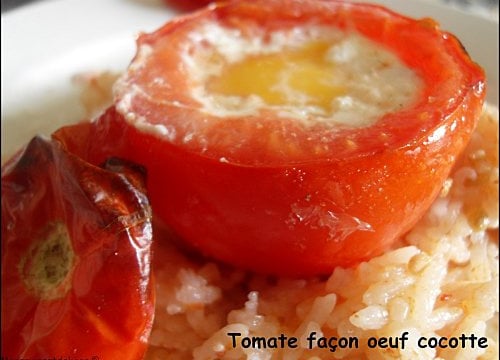 Au fond d'un plat, disposer le riz. Évider les tomates et mettre le cœur de la tomate (+jus) sur le riz.