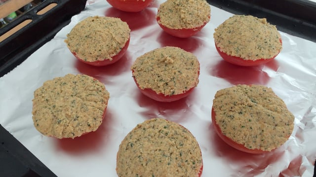 Étaler votre mixture sur les tomates.
