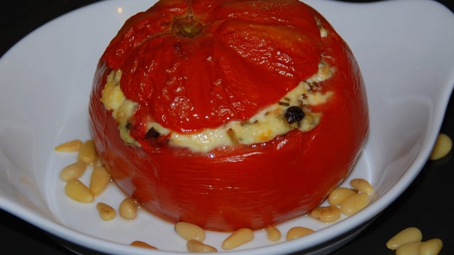 Servir accompagné de mesclun, avec en guise d'assaisonnement, la pulpe de tomates