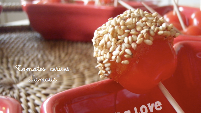 Tremper chaque tomate dans le caramel, puis dans le sésame.