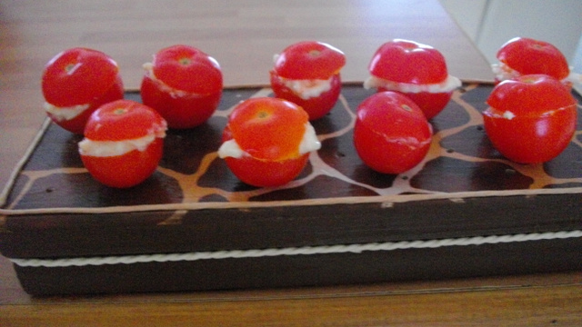 Il s'agit de tomates cerises farcies avec des miettes de crabe à la mayonnaise.