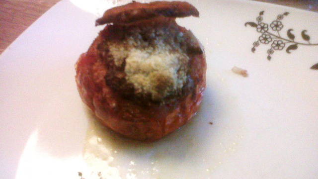 La traditionnelle tomate farcie à la mie de pain pour alléger au maximum la farce.