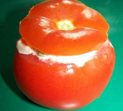 - 3Farcisez les tomates avec la préparation.Vous pouvez ajouter de la vinaigrette ou de la mayonnaise.