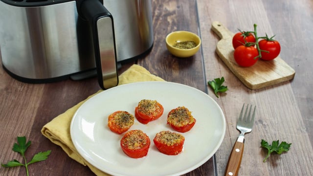 A la recherche d’un accompagnement simple mais gourmand pour vos poissons ou autres pièces de viandes grillées ? Testez les tomates provençales ! Cuites au Air Fryer, elles apportent couleur et saveur à tout type de plats en quelques minutes !