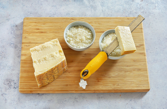 Râpez le Grana Padano AOP nécéssaire pour la farce et pour la finition. Réservez dans deux bols différents.