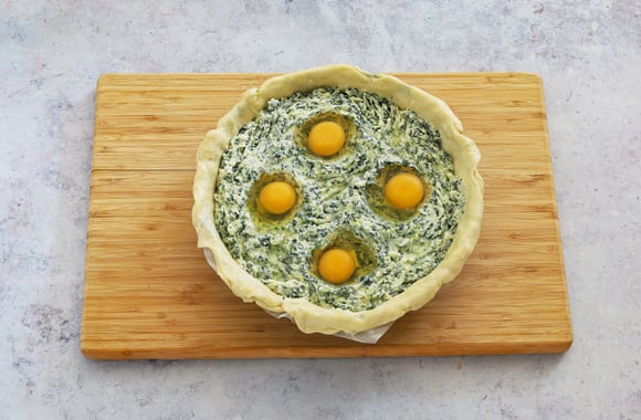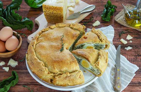 La « torta pasqualina » est une tourte salée italienne typique de Pâques. Elle est farcie avec de la ricotta, des épinards et des œufs entiers. Nous y avons apporté notre touche personnelle, en y ajoutant du Grana Padano AOP, pour encore plus de saveurs.