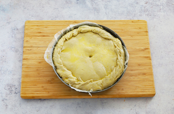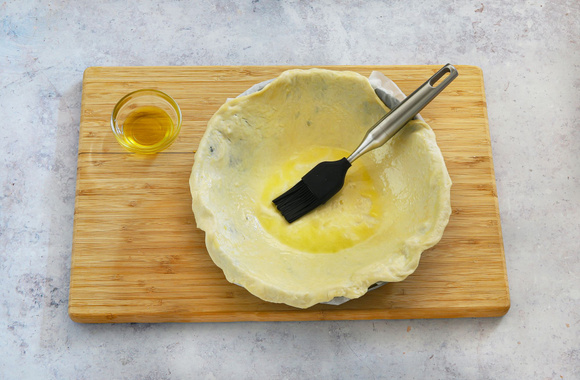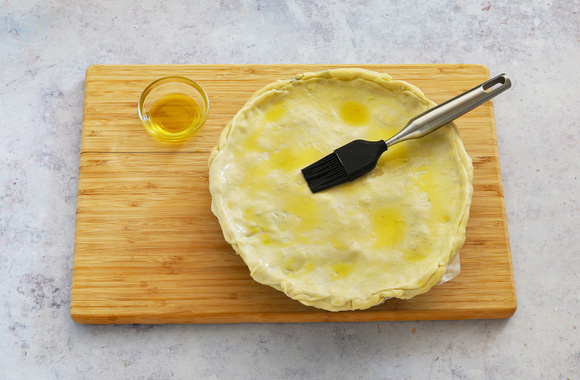 Faites une cheminée au centre de la tourte. Huilez toute la surface de la tourte, toujours à l'aide d'un pinceau.