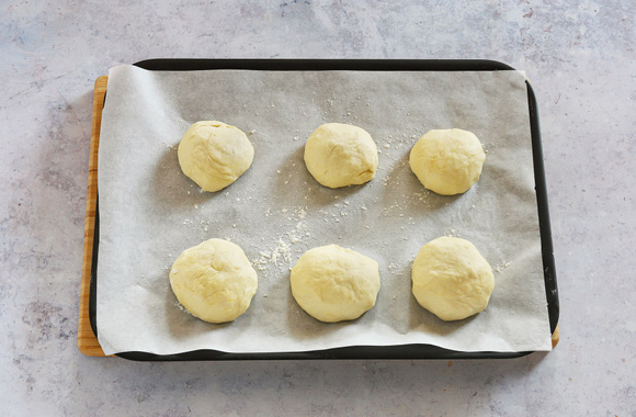 Déposez les pâtons sur un plateau huilé, couvrez-les avec un torchon propre pour empêcher qu'ils ne dessèchent. Laissez reposer 1 heure à température ambiante.