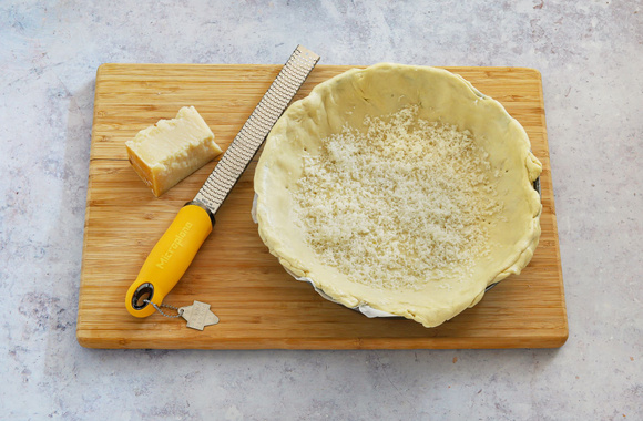 Râpez du Grana Padano AOP sur le fond de pâte en le répartissant bien.