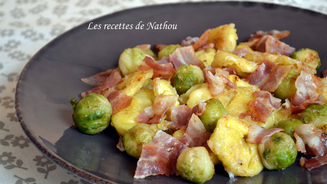 Des pâtes poêlées, pourquoi pas ? Aa ajoute un petit côté croustillant bien agréable !Et puis, il me restait quelques choux de Bruxelles et du lard... voilà encore un plat anti-gaspi ;-)