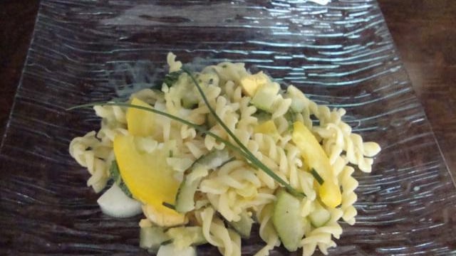 L'association pâtes, herbes fraiches et légumes frais forme un mariage très réussi, relevé du goût subtil du citron et de l'ail..un régal !