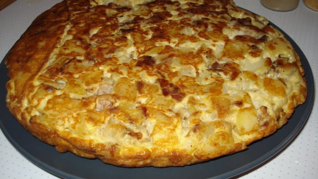 Battre les oeufs dans un saladier y insérer les pommes de terres et les mélanger un peu, remettre à cuire d'un côté, posé une assiette pour la retourner et remettre à cuire de l'autre côté, la tortilla est fin prête.