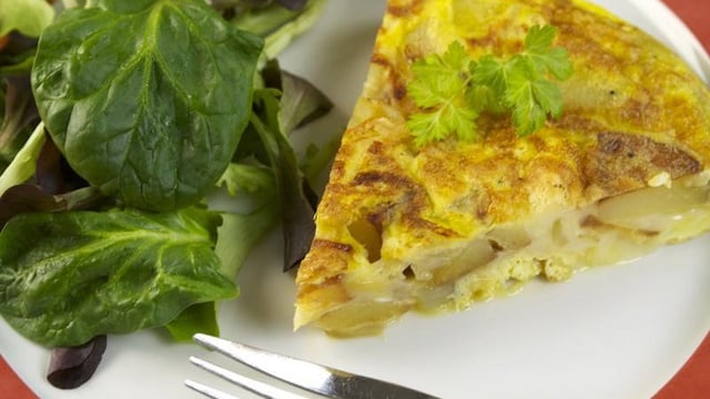 Servir l'omelette bien dorée des deux côtés chaude ou froide accompagnée d'une petite salade.