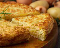 Une omelette de pommes de terre espagnole garnie de fromage pour un repas facile à faire.