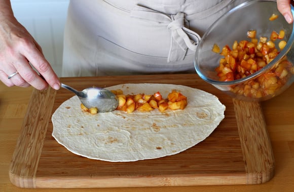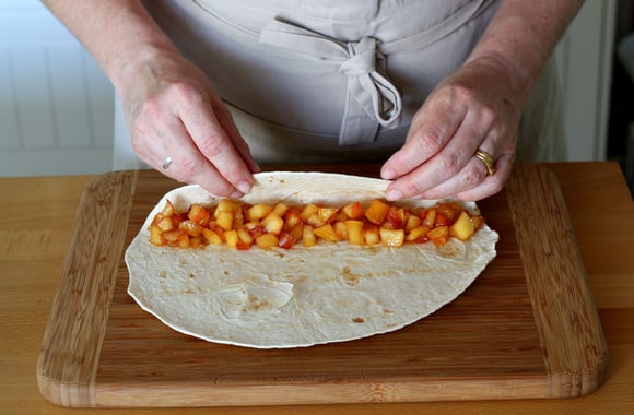6Répartissez les pommes en une bande sur la partie inférieur de chaque tortilla.