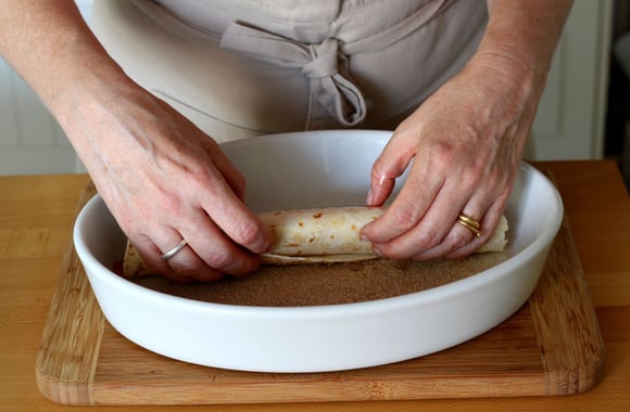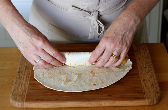 8Roulez la tortilla afin de former un boudin. Faites de même avec les 3 autres tortillas.
