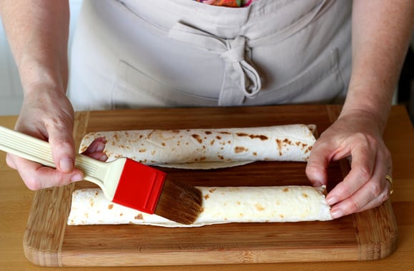 9Badigeonnez chaque tortilla avec le beurre fondu