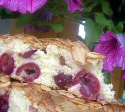 Monter les blancs d'oeufs en neige ferme avec une pincée de sel et incorporez-les délicatement dans la préparation.Verser la pâte dans le moule, répartir les cerises sur le dessus.
