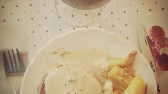 Dressez les assiettes avec le tournedos et les pommes de terre puis arrosez le tournedos de votre délicieuse sauce au foie gras.