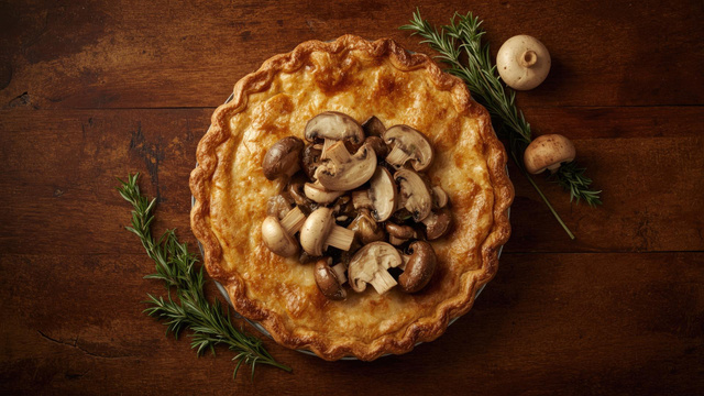 Mettre une pâte feuilletée dans un moule à tarte, y verser la réparation aux champignons, les châtaignes coupées grossièrement et disposer les aiguillettes de canard dessus et recouvrir de la seconde pâte. A l'aide d'un pinceau, l'enduire de jaune d'oeuf ou de lait.