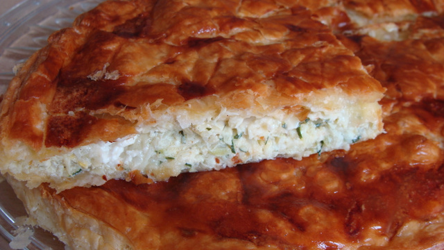 Etalez votre pâte feuilletée dans un plat à tarte, rajouter le mélange, disposer les morceaux de fromage de chèvre