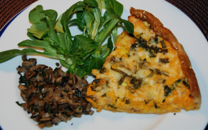 - Étaler la pâte dans un moule à tarte et réserver au frigo.- Cuire le potiron à l'huile d'olive avec les oignons blancs sués.