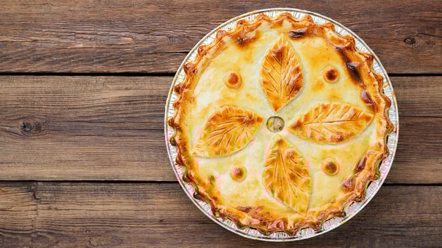Etaler la pâte dans un petit saladier en épousant le fond. Le garnir des morceaux de têtes de veau, des lamelles de poire puis des morceaux de fourme d'Ambert. Recouvrir de pâte.
