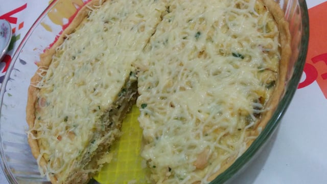 Saler et poivrer, ajouter la crème fraîche, étaler sur une pâte feuilletée que vous refermez. Ajouter un peu de fromage rapé, 30 minutes au four pour faire cuire la pâte et gratiner le fromage sur la pâte. Servir tiède.