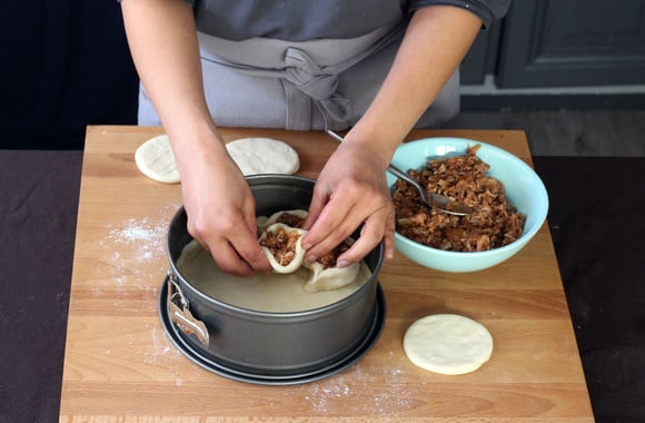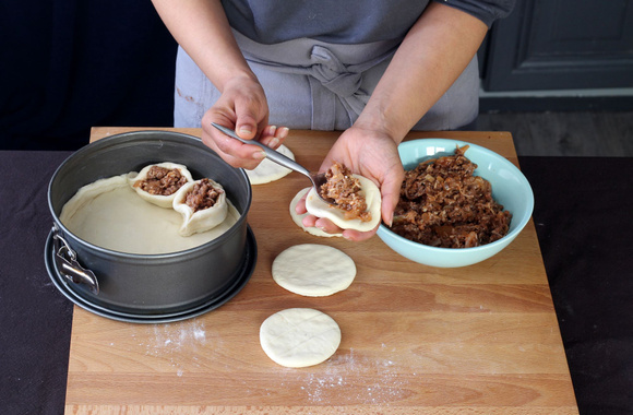 5Mettre 1 cuillère à café de farce au milieu de chaque cercle.