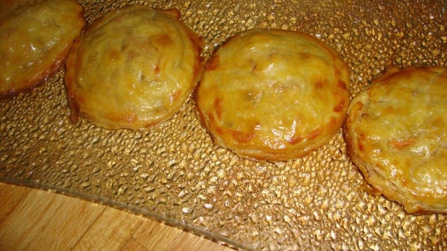 J'ai mis un peu de farce dans chaque tourte et recouvert d'un cercle de pâte.