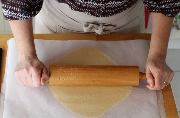 5Étalez entre 2 feuilles de papier cuisson, sur une épaisseur de 5 mm puis réservez au frais 30 minutes.