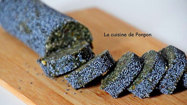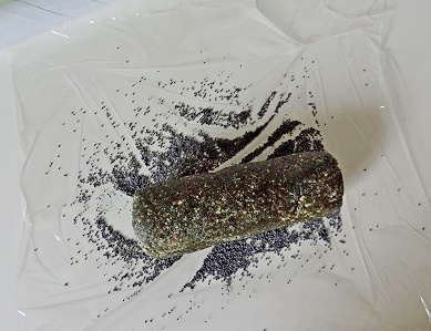 2Faire un petit boudin et le rouler dans les graines de pavot. Filmer et laisser durcir 1h dans le frigo.