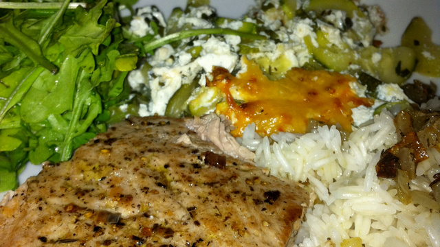Mettre les tranches de thon sur le grill, 5 minutes de chaque coté en arrosant de marinade.Saler le thon.