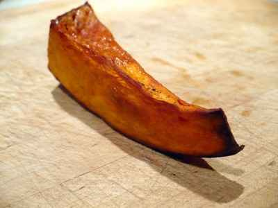 Couper le potimarron en tranches d'environ 10 cm x 4 cm.