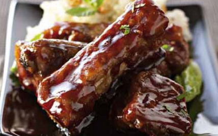 Dans les sucs de cuisson de la viande, mettre l'ail écrasé, le gingembre, le piment et le sucre, faire chauffer et ajouter le vin. Laisser épaissir, remettre les travers et les enrober de sauce. - 3