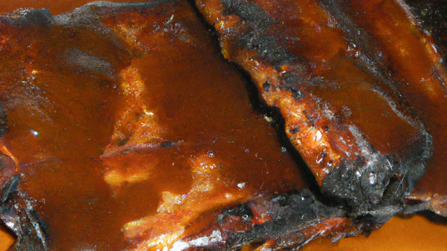 Travers de porc marinés avant cuisson au barbecue.