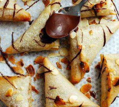 Prenez deux bandes de feuilles de brick, coupez une