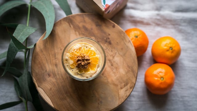 Variante : pour une recette plus rapide remplacez la crème à la vanille par du fromage blanc additionné d’un peu de jus de clémentines.